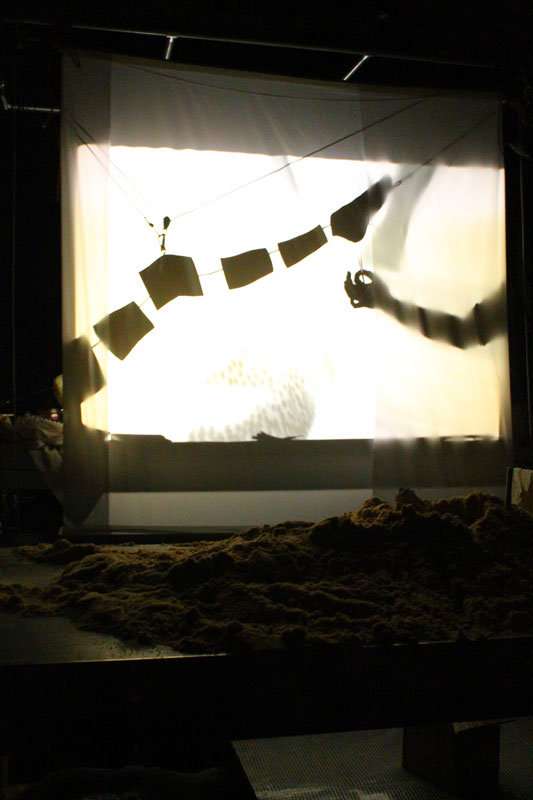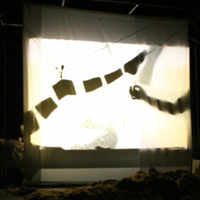 Notre regard se projette sur des marionnettes inertes de textures différentes dont la dissection donne lieu à une manipulation de diverses matières et d’objets en lumière.